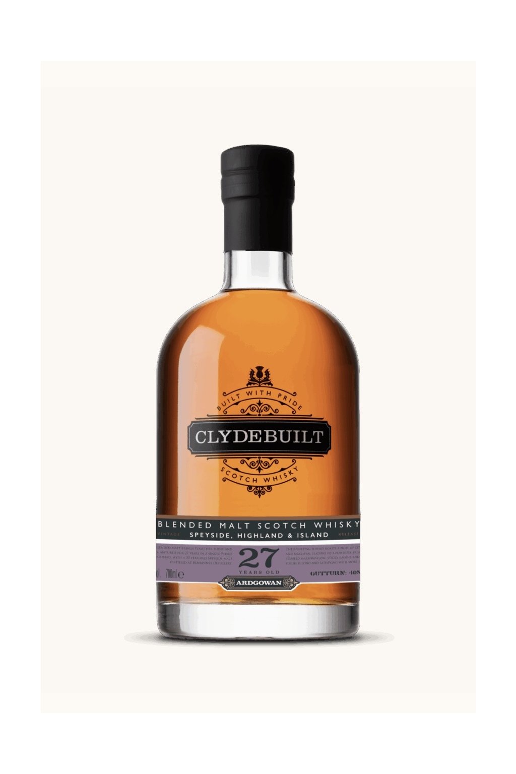 Amíg az Ardgowan saját párlatai érlelődnek, addig Laura Davies whisky-készítő ugyanazzal a gondossággal és szakértelemmel válogatta és kezelte a Clydebuilt boutique sorozat tételeit is. Ez a limitált kiadás mindössze 408 palackból áll, hordóerősségen palackozva, 41,8% alkoholtartalommal, hűtveszűrés és hozzáadott színezék nélkül.